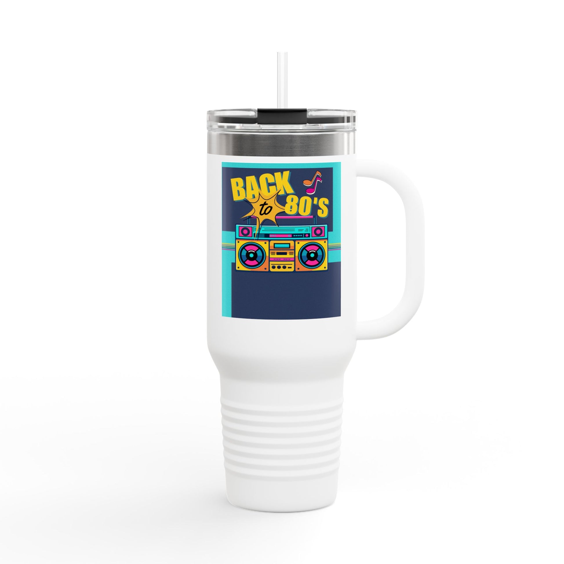 Back to the 80’s Insulated Travel Mug — 40oz Retro Boombox Design