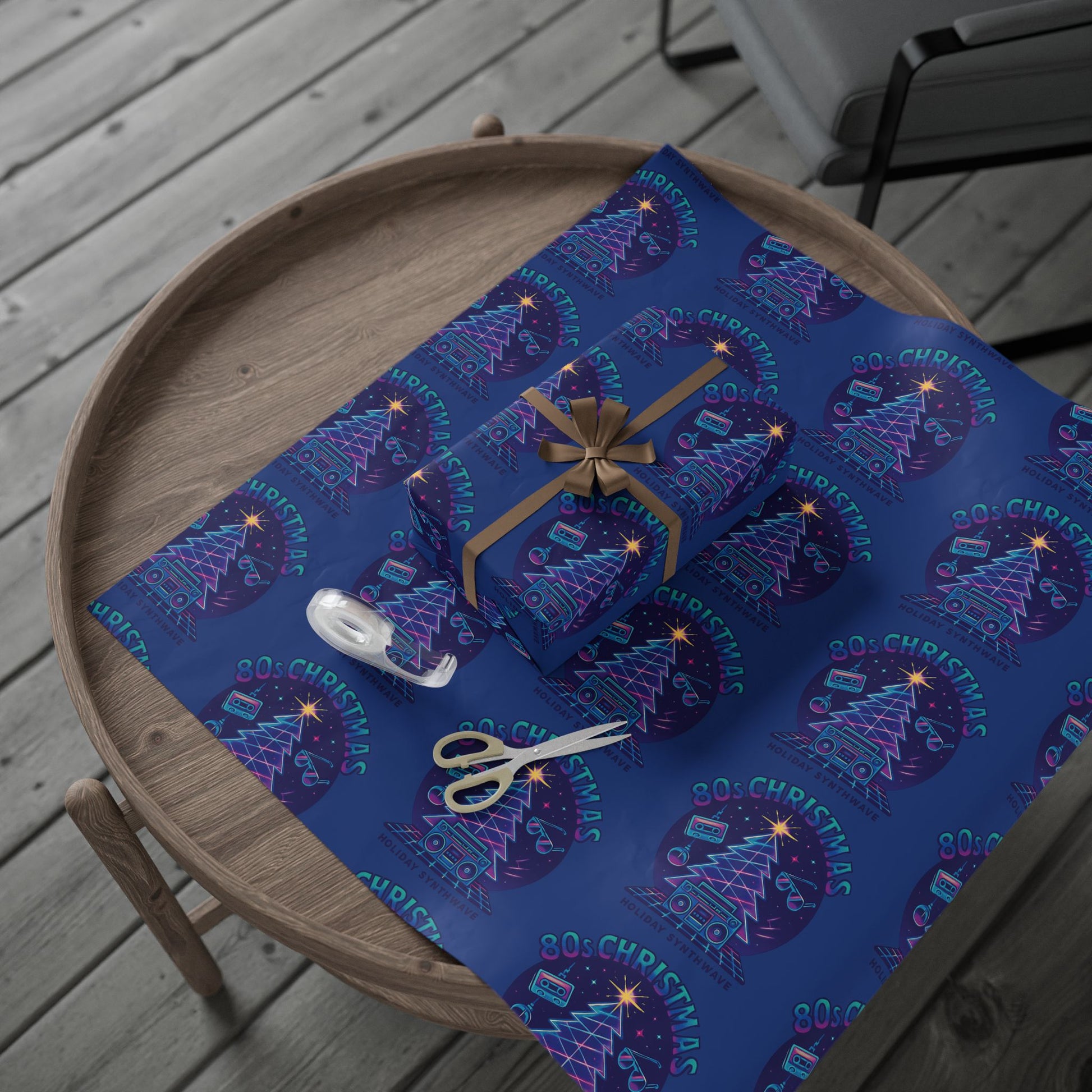 Neon Retro Christmas Wrapping Paper – 'Merry Christmas' Blue Holiday Gift Wrap