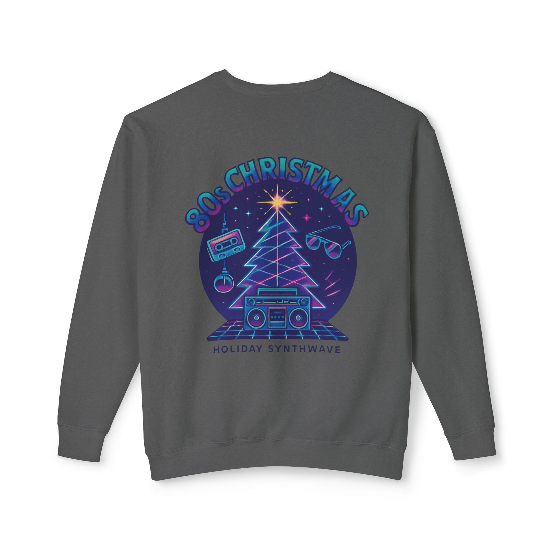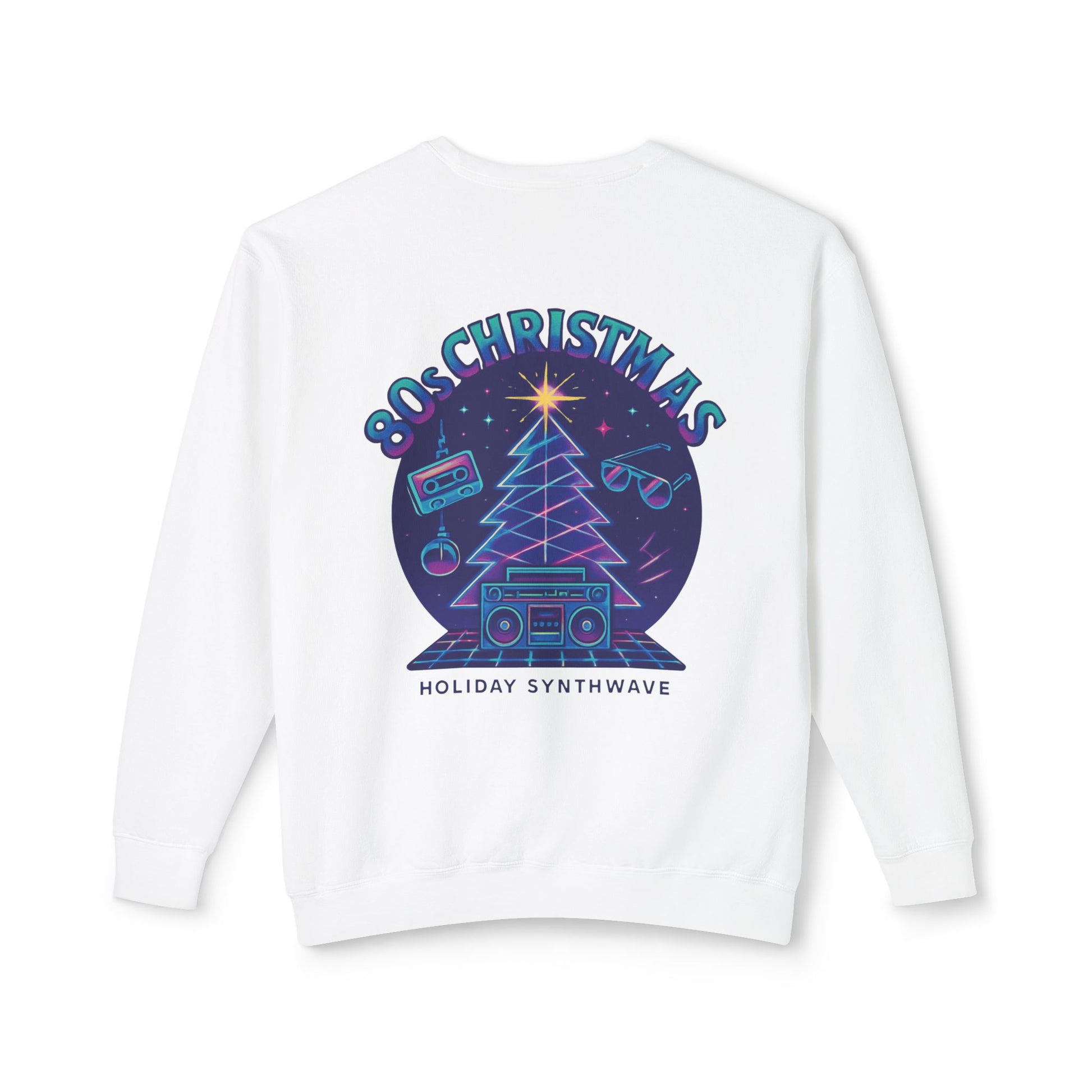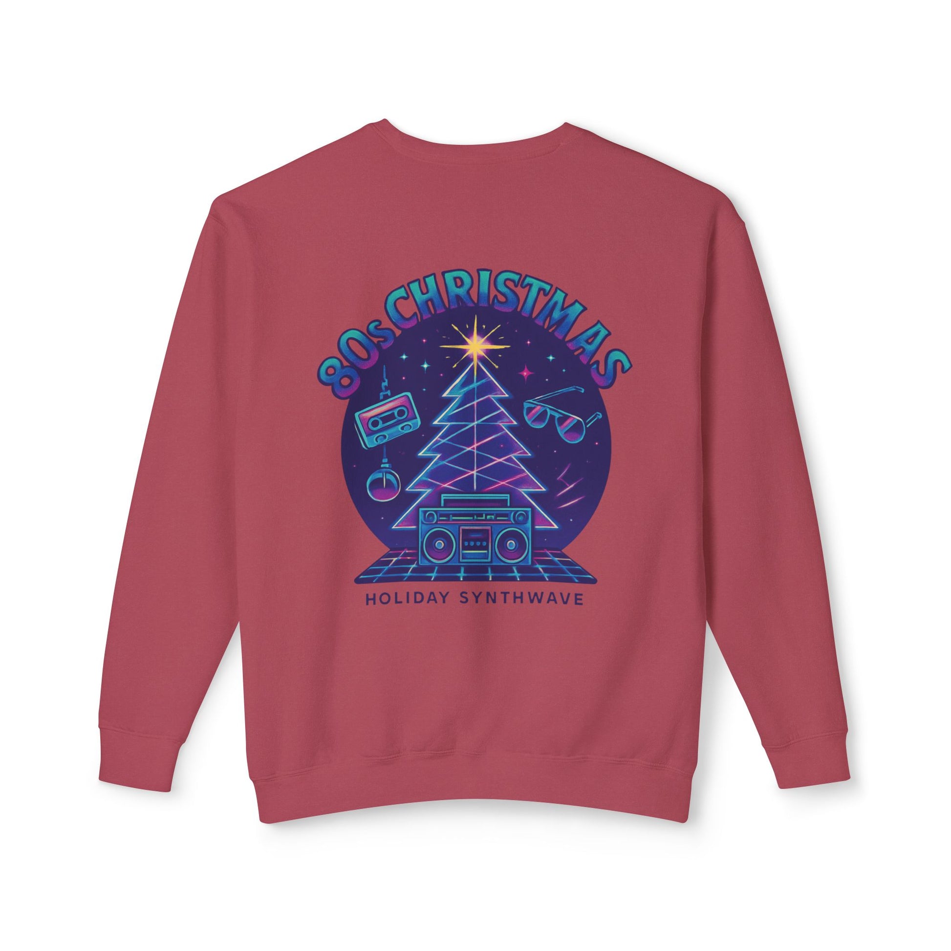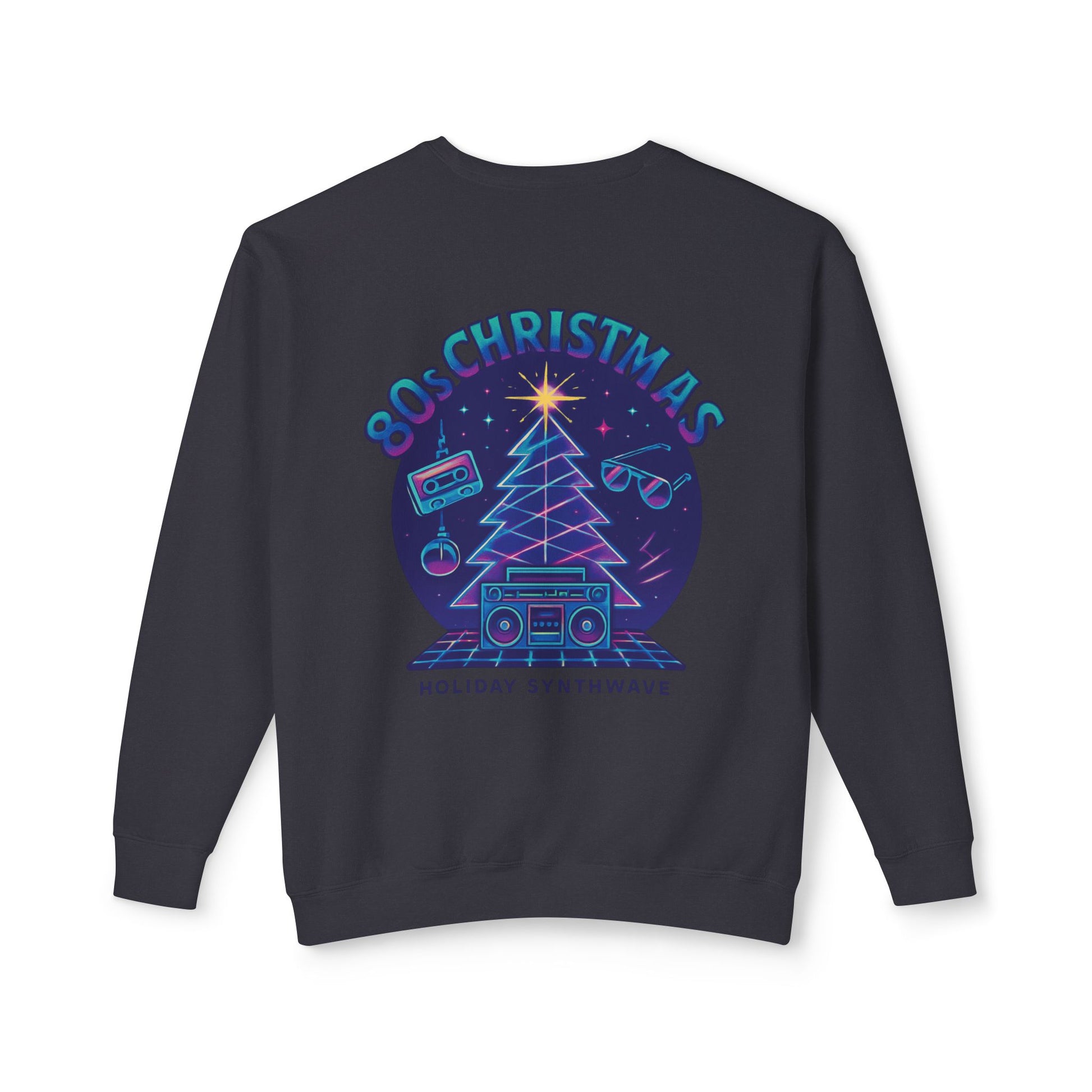 This lightweight crewneck brings a playful, retro holiday vibe to casual winter wardrobes. The front shows a neon-styled Santa in sunglasses and an 80s windbreaker, giving off confident, laid-back energy. The back features a synthwave Christmas scene — geometric tree, cassette and boombox accents, and bold “80s Christmas” lettering — finished in sunset gradients and electric purples. Soft, breathable ring-spun cotton and a relaxed cut make it easy to layer over tees or under coats. Wear it to low-key seasonal hangouts, holiday parties with nostalgia lovers, or when you want to add a splash of vintage color to chilly days.