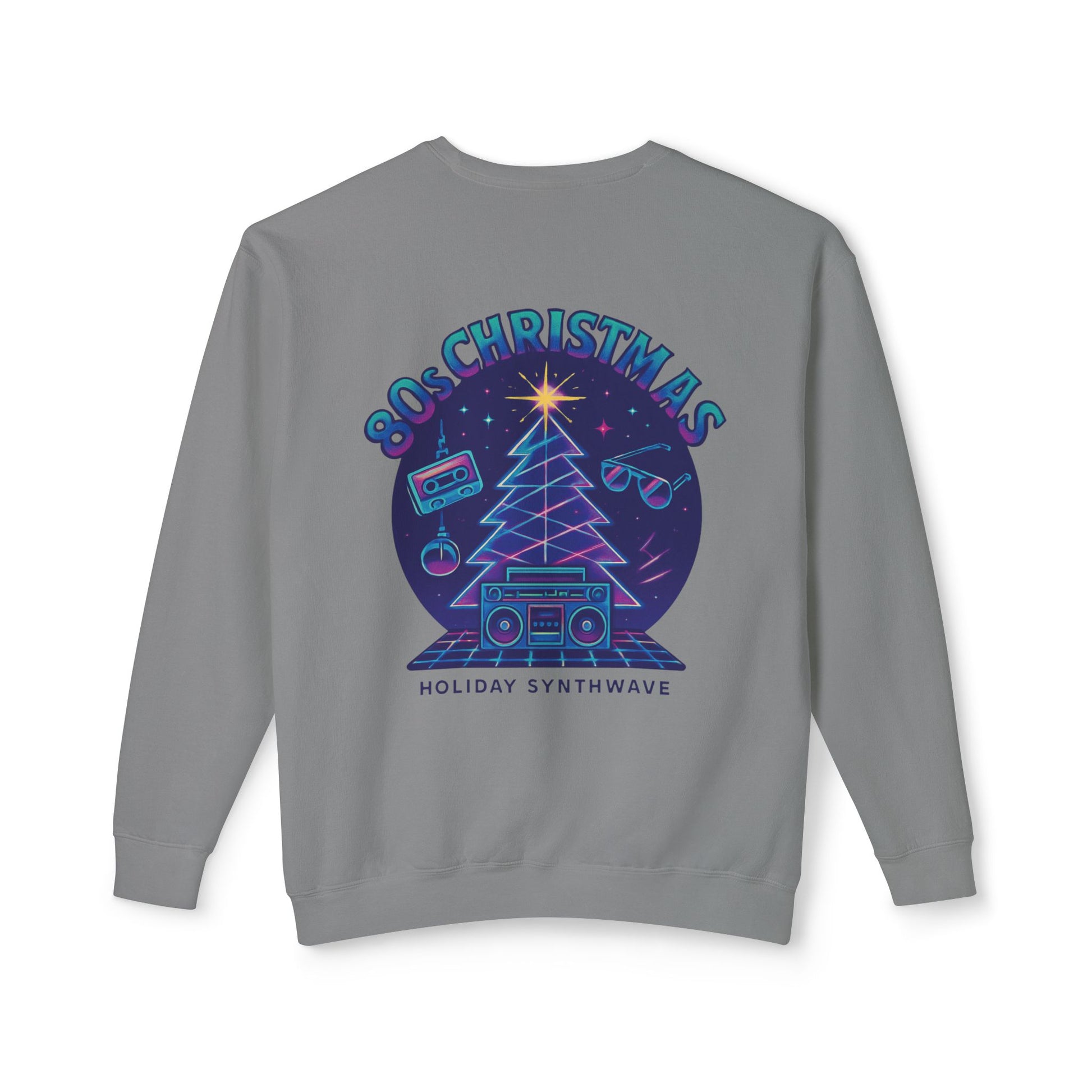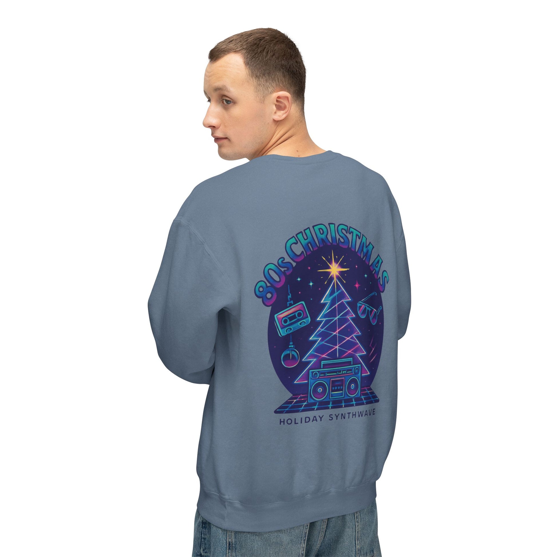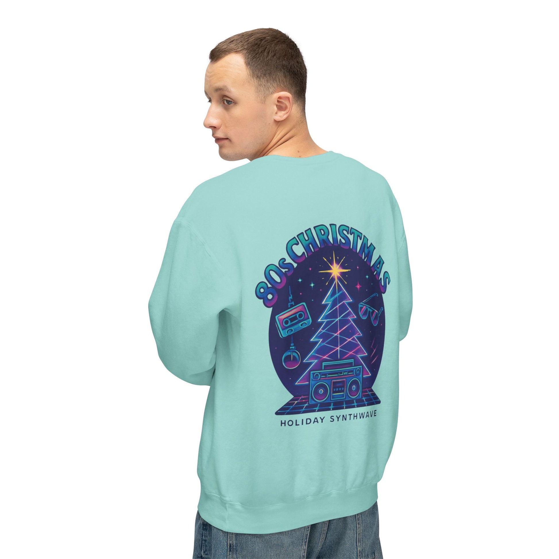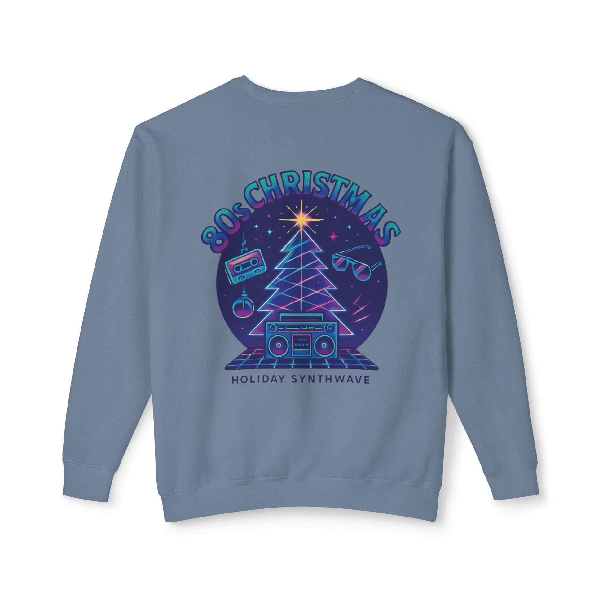 This lightweight crewneck brings a playful, retro holiday vibe to casual winter wardrobes. The front shows a neon-styled Santa in sunglasses and an 80s windbreaker, giving off confident, laid-back energy. The back features a synthwave Christmas scene — geometric tree, cassette and boombox accents, and bold “80s Christmas” lettering — finished in sunset gradients and electric purples. Soft, breathable ring-spun cotton and a relaxed cut make it easy to layer over tees or under coats. Wear it to low-key seasonal hangouts, holiday parties with nostalgia lovers, or when you want to add a splash of vintage color to chilly days.