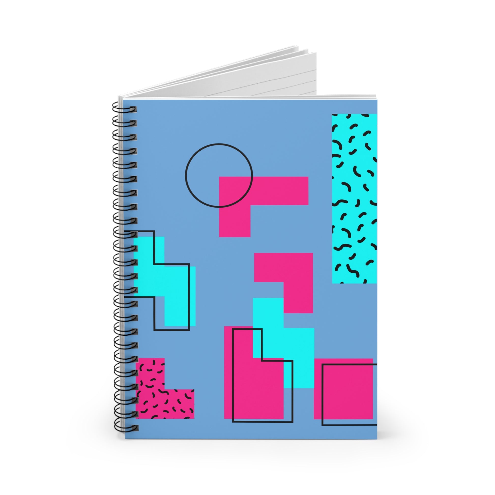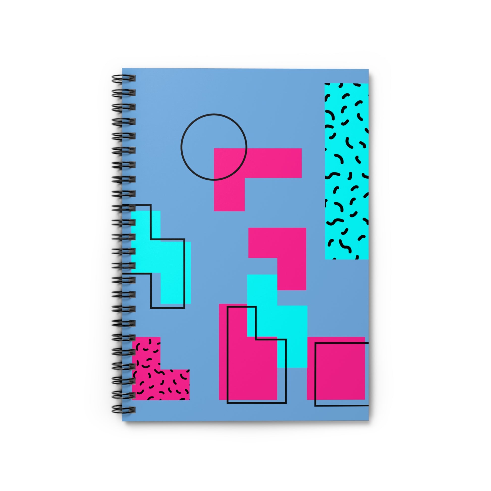 Retro Geometric Spiral Notebook — 80s Memphis Style Ruled Journal