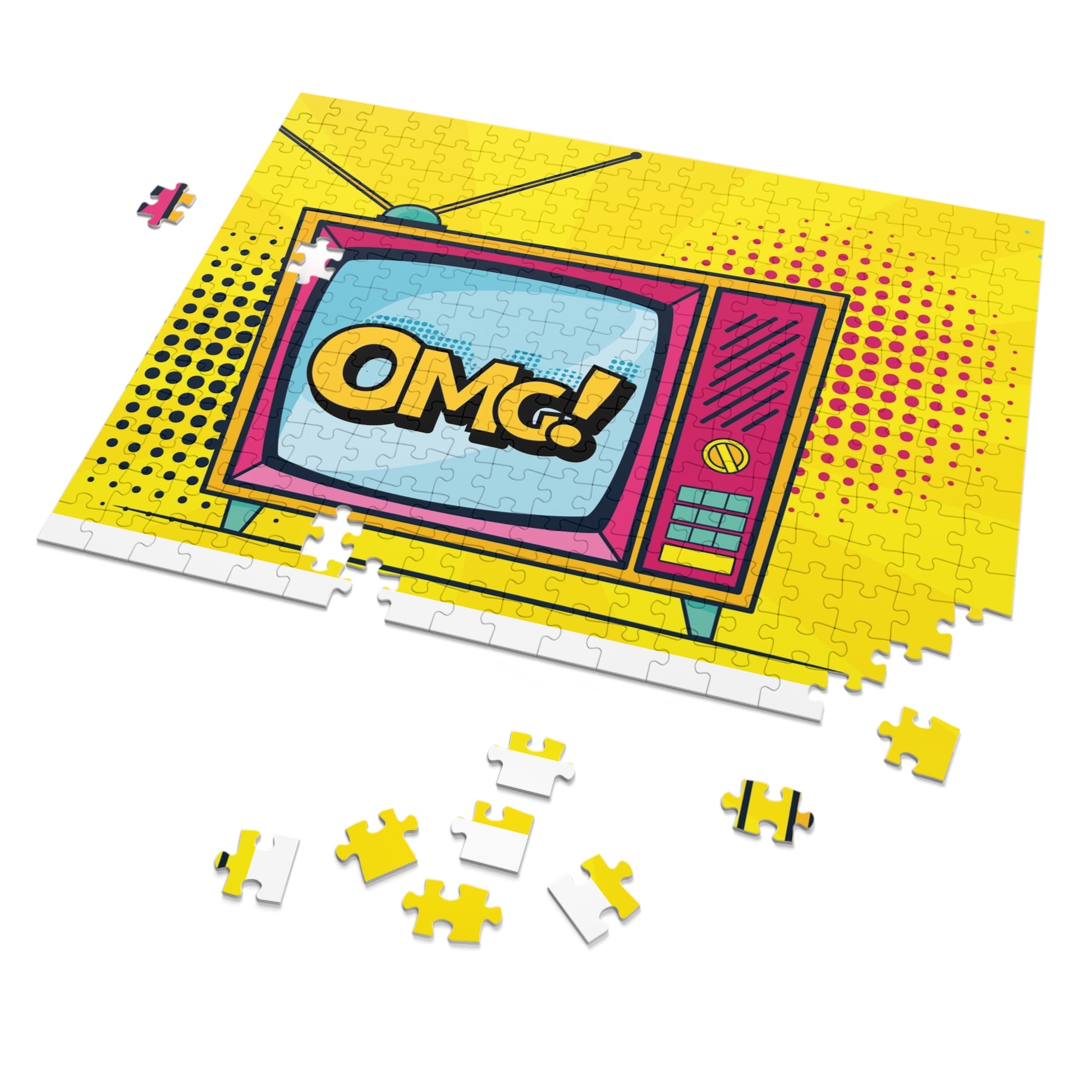 Retro TV OMG! Jigsaw Puzzle with Tin - Fun & Colorful 500-Piece Puzzle for Friends & Family