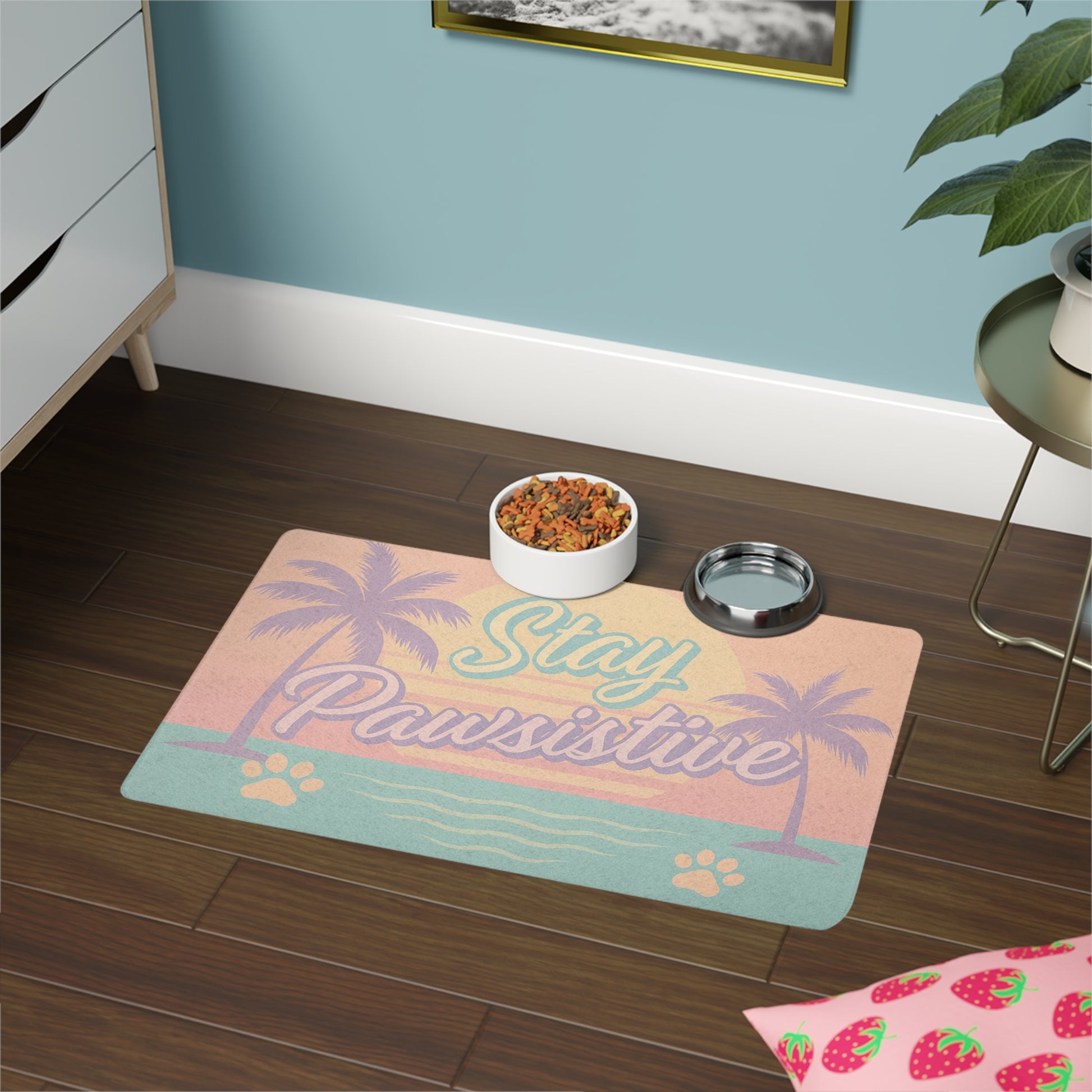 Stay Pawsistive Pet Food Mat — Retro Beach Dog Bowl Placemat